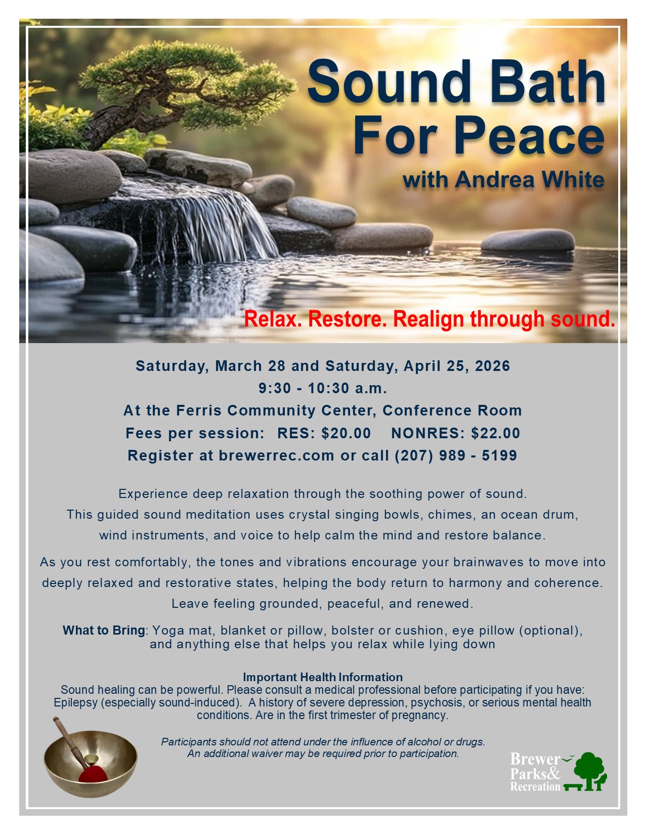 As you rest comfortably, the tones and vibrations encourage your brainwaves to move into deeply relaxed and restorative states, helping the body return to harmony and coherence. Leave feeling grounded, peaceful, and renewed.